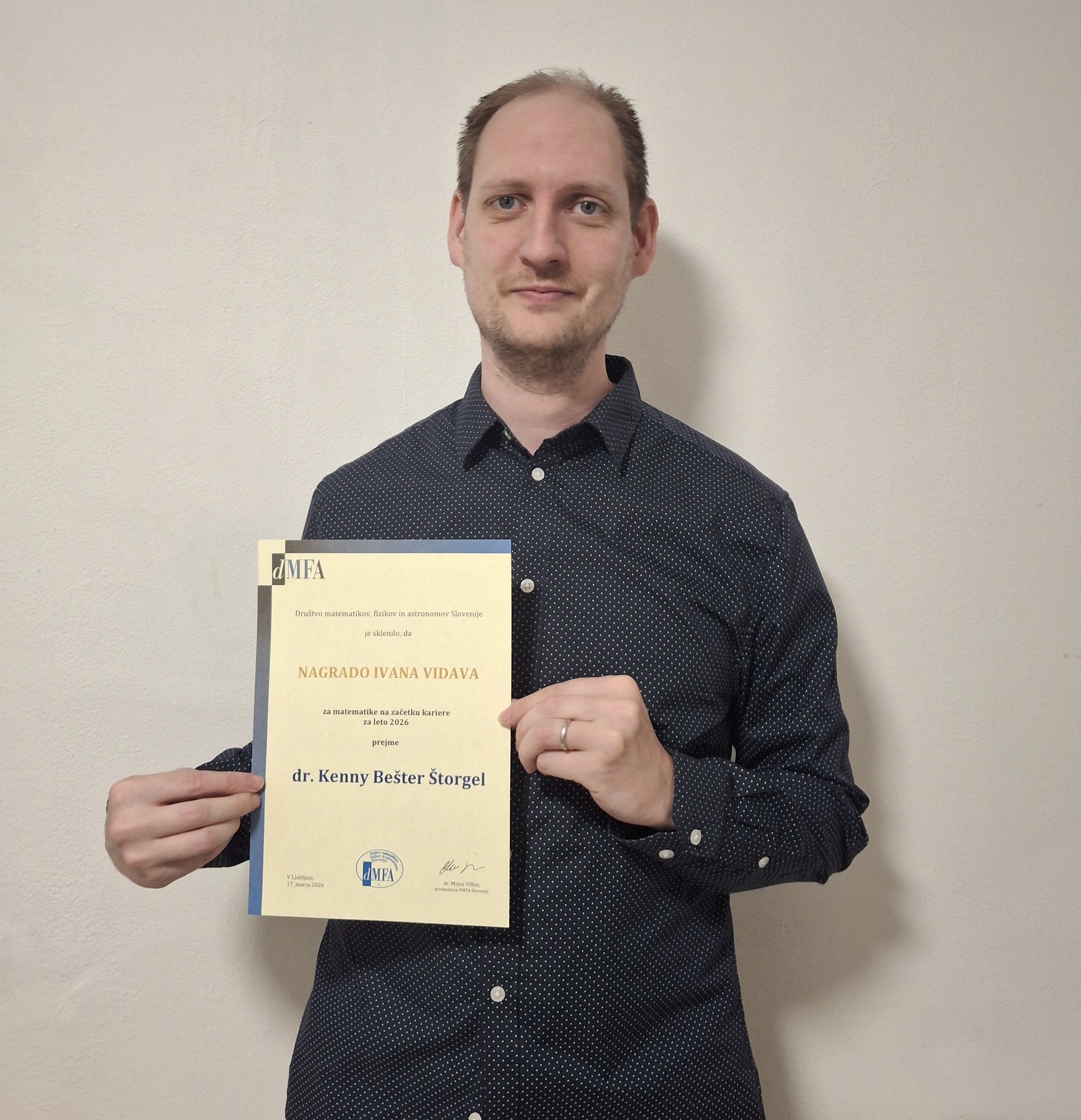 Od letošnjega leta dalje bo DMFA Slovenije vsaka tri leta podelilo nagrado za najboljše raziskovalne dosežke matematikov in matematičark na začetku kariere, ki so znaten del svojega raziskovalnega dela opravili na kateri od slovenskih ustanov. Za prvega prejemnika nagrade Ivana Vidava je bil med štirimi nominiranci izbran dr. Kenny Bešter Štorgel, ki je doktoriral leta 2023 na Univerzi na Primorskem. Strokovna komisija v sestavi prof. dr. Sergio Cabello Justo, prof. dr. Aleksey Kostenko in prof. dr. Marjeta Kramar - Fijavž je v utemeljitvi nagrade zapisala, da v raziskovalnem delu nominiranca izstopa izjemna serija treh člankov o drevesni širini grafov, ki je objavljena v najprestižnejših mednarodnih revijah s področja diskretne matematike (celotna utemeljitev komisije).